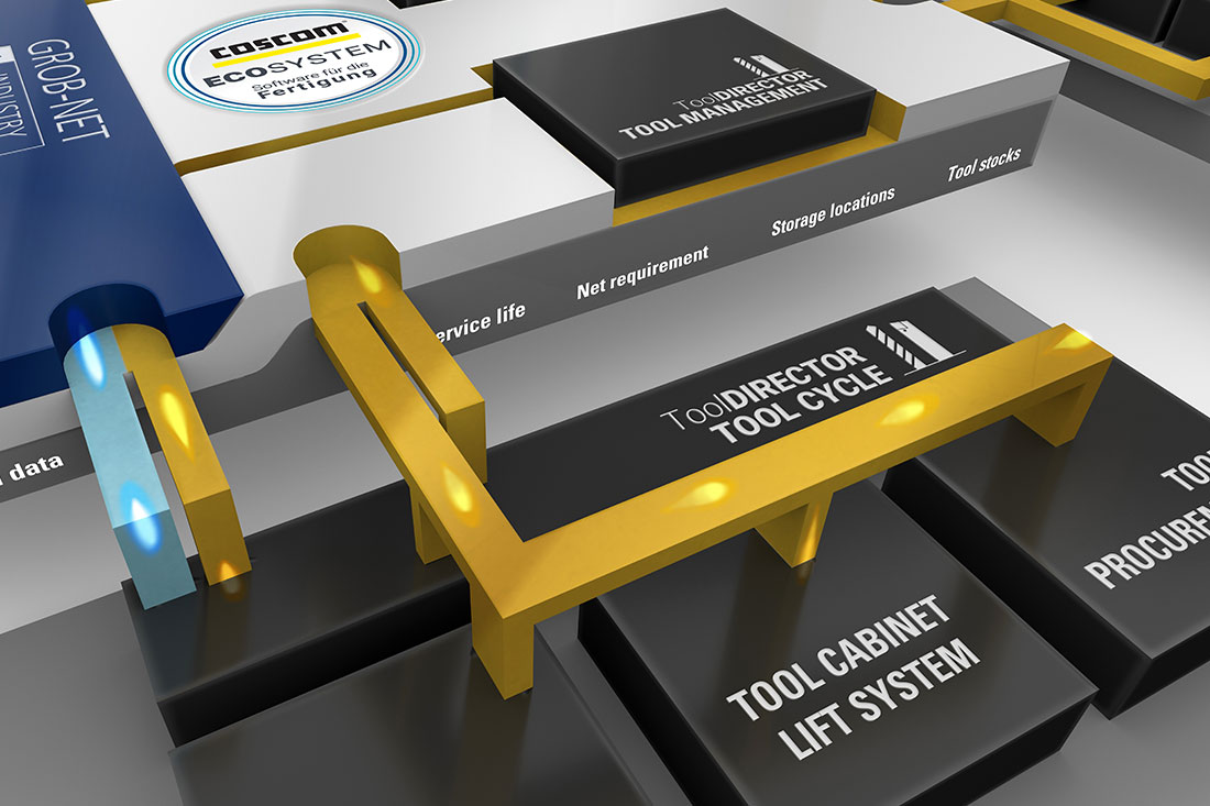 COSCOM Software-Produkte und Prozess-Lösungen greifen überall im PLM-, CAD/CAM- und Fertigungsprozess und tragen zu einer verbesserten Effizienz auf dem Weg zur Smart Factory und Industrie 4.0 bei. Das COSCOM ECO-System beinhaltet verschiedene Shopfloor-Software-Module, die separat genutzt oder aufeinander aufgebaut werden können. Ein beliebtes Modul ist der ToolDIRECTOR VM für die Werkzeugverwaltung. Hier können alle relevanten Werkzeugdaten digital gespeichert werden.