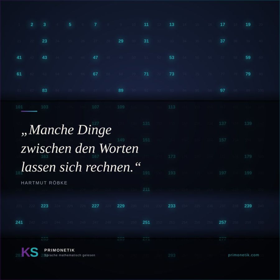 Röbkes Antwort ist ein eigener methodischer Ansatz, den er Primonetik nennt. Primonetik untersucht gesprochene und geschriebene Sprache auf ihre taktische Struktur “ konkret: auf die Positionen bestimmter Elemente an Primzahl-Stellen im Satzverlauf. Daraus entsteht ein messbarer Index, der Resonanz-Kohärenz-Index (RKI), der sprachliche Kohärenz und Dissonanz quantifizierbar macht, ohne sie auf bloße Wortwahl zu reduzieren.